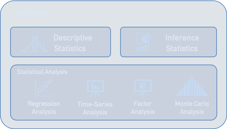 Courses in Probability Theory, Stochastic Processes, Descriptive Statistics, Hypothesis Testing and Statistical Methods (Regression, Time-Series Analysis, Monte Carlo simulation..)
