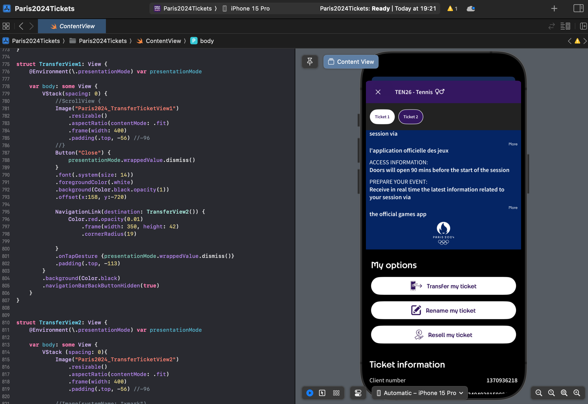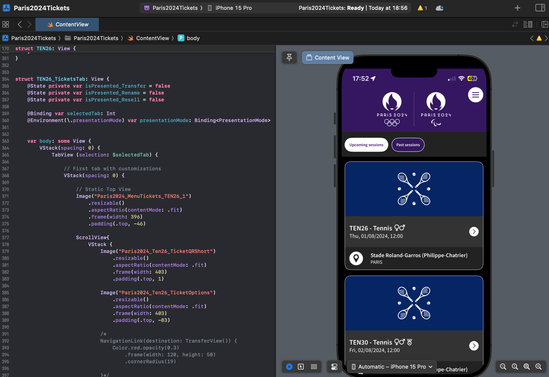 The The official Paris 2024 Olympics app requires a recent iOS version, making it inaccessible to users with older iPhones. This project was developed to bridge that gap, offering a lightweight, backward-compatible alternative. By recreating key functionalities like ticket management and reservation access, the app ensures that users can still attend events without upgrading their hardware. The goal was to optimize performance for older devices while maintaining a similar user experience and interface to the official app.
