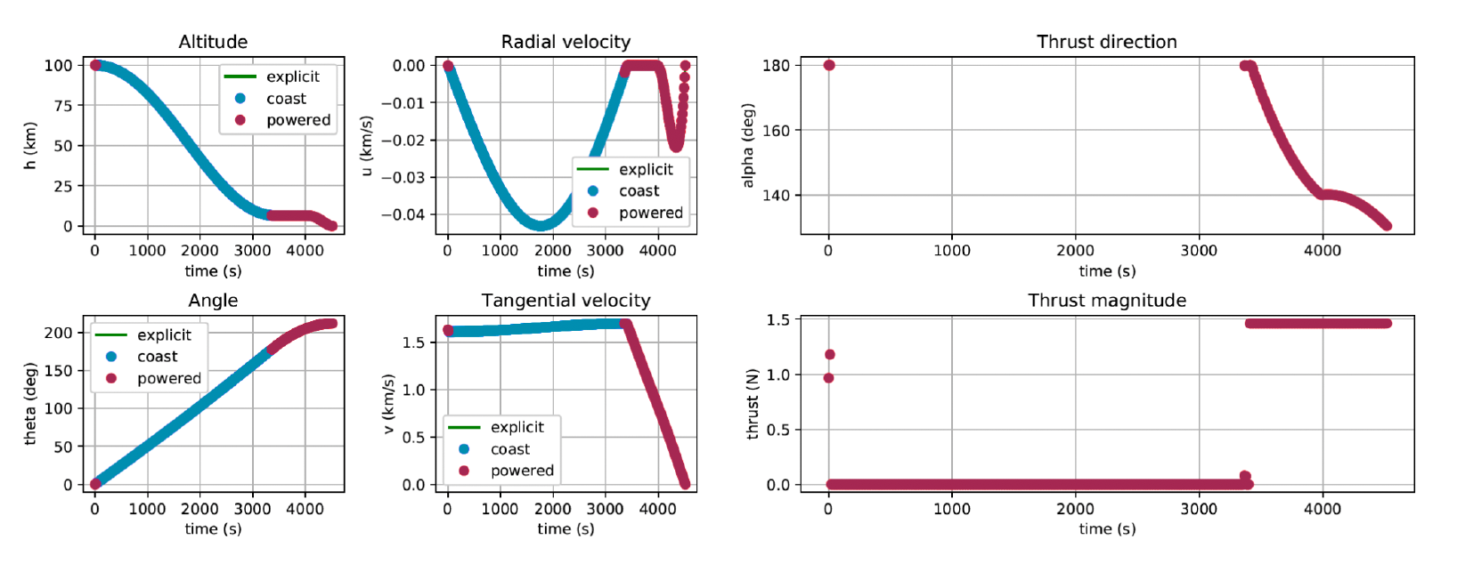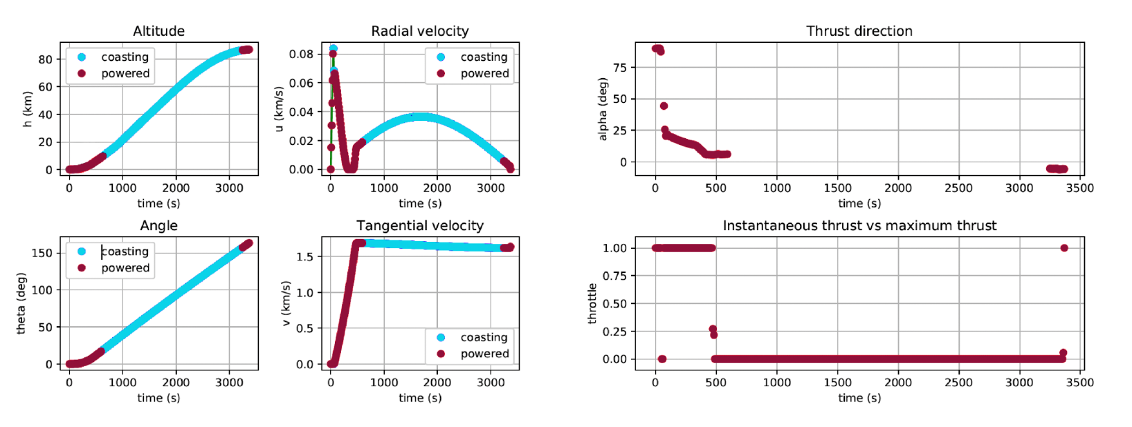 The general lunar ascent mission scenario was formulated in OCP1, and due to the simplicity of the polar coordinates, it is the perfect scenario to introduce the results for trajectory optimization.