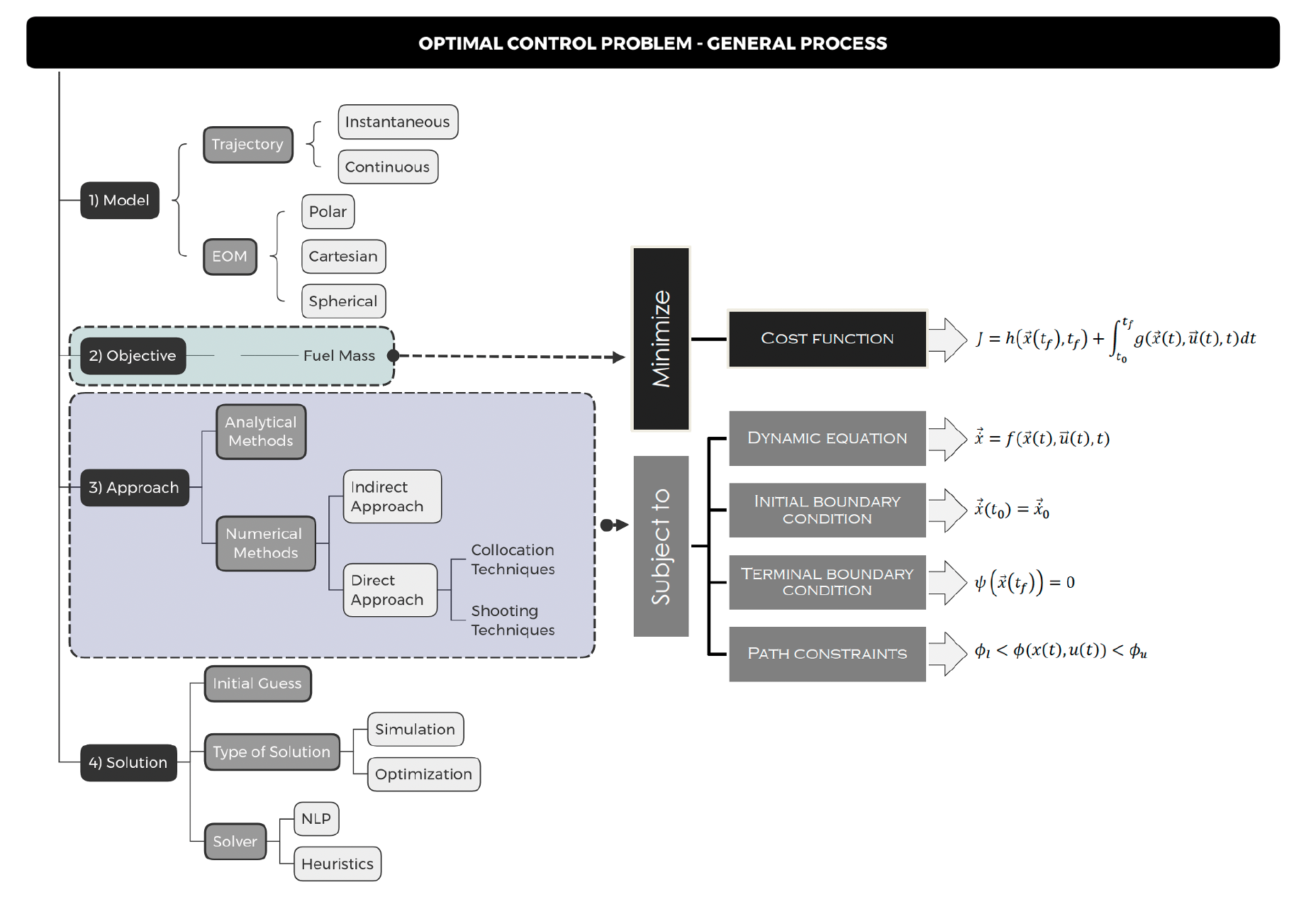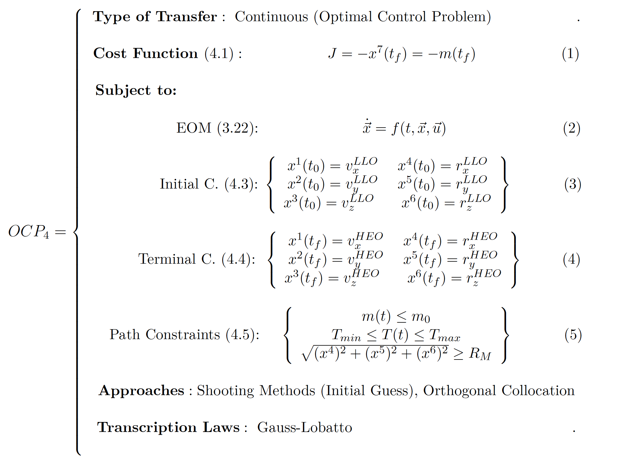 Following the general 4-step optimization process, the general approach to the OCP3 can be stated according to equations OCP4. For this case, the dynamics of the motion will be described according to the Equations of Motion of the CR3BP EOM (3.22).